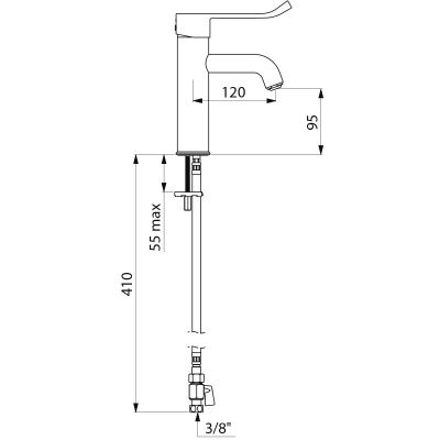 Mitigeur monotrou avec bec H.95 L.120 équipé d’une sortie BIOSAFE hygiénique.