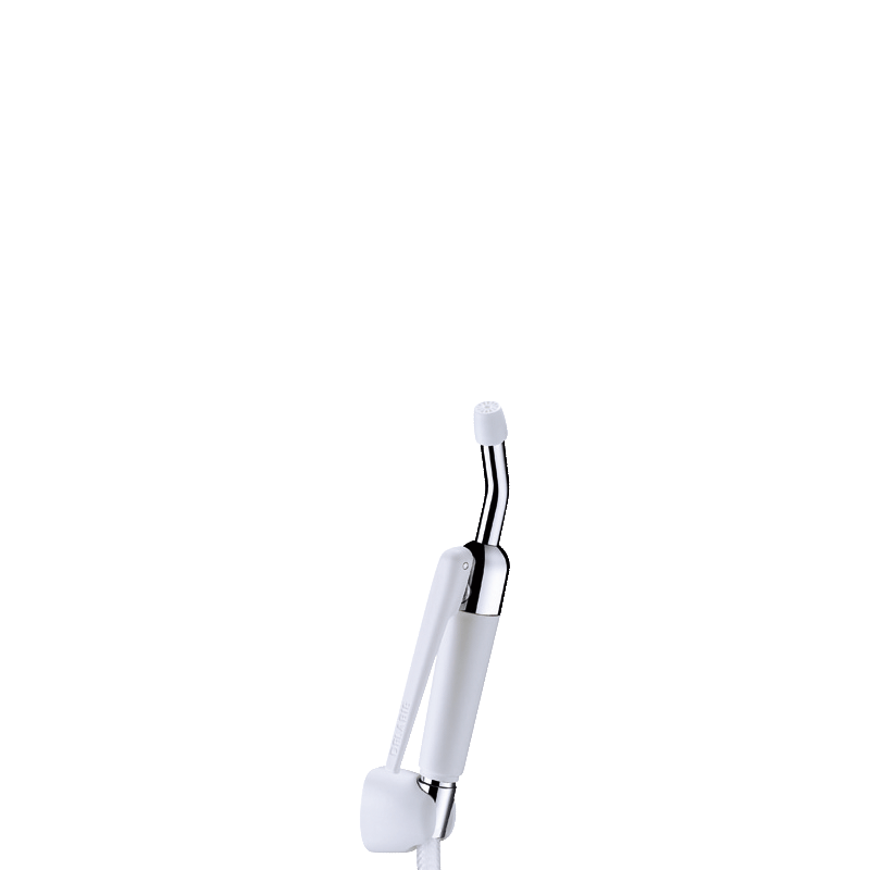 Réf. 15846Douchette HOSPITAL à gâchette inversée avec embout démontable et incliné à 30° : écoulement si gâchette relâchée (obligation de refermer le robinet d'arrêt en fin d'usage afin d'éviter le risque de mise en pression constante du flexible).