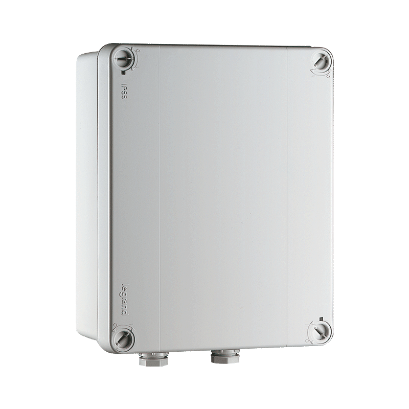 Boîtier étanche en PVC gris (200 x 160 x 92) avec sectionneur bipolaire.