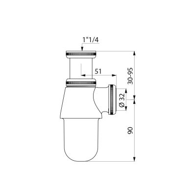 Réf. 517000Siphon d'urinoir ou de lavabo à sortie horizontale :