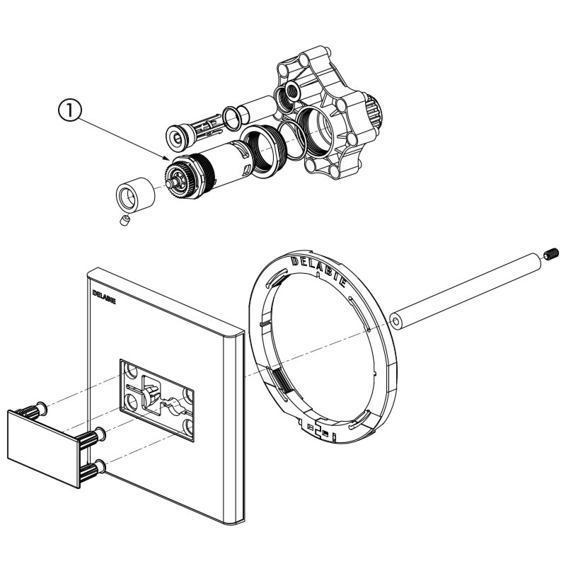 Réf. 778700Plaque de commande et robinetterie temporisée TEMPOFLUX F1/2", kit 2/2 :
