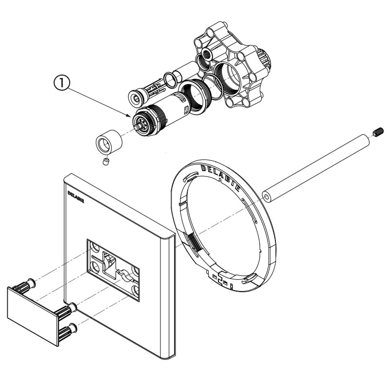 Réf. 778707Plaque de commande et robinetterie temporisée TEMPOFLUX F1/2", kit 2/2 :