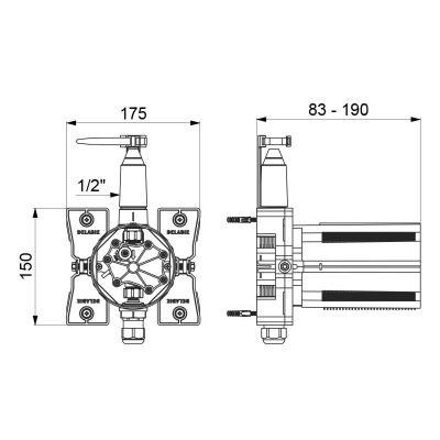 Boîtier d'encastrement avec protection, robinetterie configurée pour une purge des réseaux sécurisée sans élément sensible, et accessoires de raccordement.