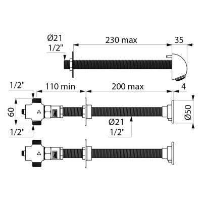Réf. 747210Ensemble de douche temporisé pour traversée de cloison :