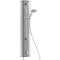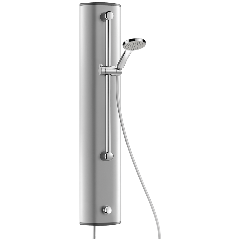 Pommeau de douche coulissant sur rampe chromé avec flexible.