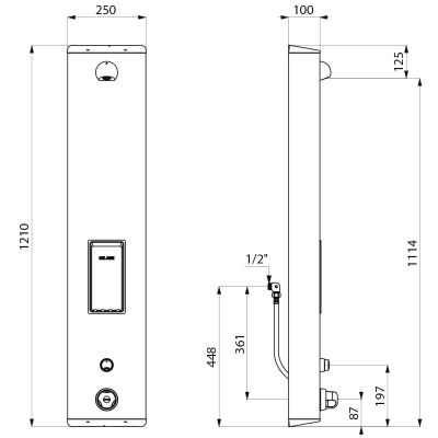 Colonne en Inox brossé grand modèle pour installation murale en applique.
