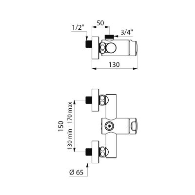 Raccords excentrés M1/2" pour entraxe de 130 à 170 mm.