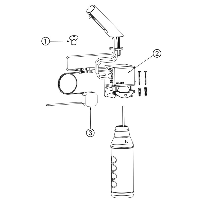 Distributeur de savon automatique : alimentation sur secteur avec transformateur 230/6 V.