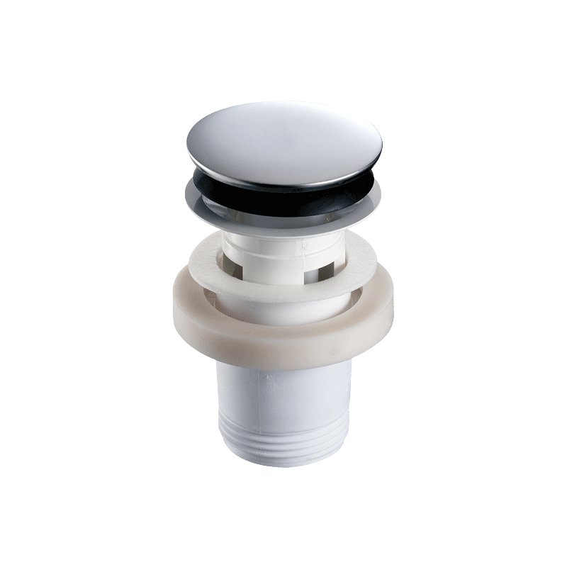 Bonde de lavabo M1"1/4 à clapet Inox, ouverte à écoulement libre.