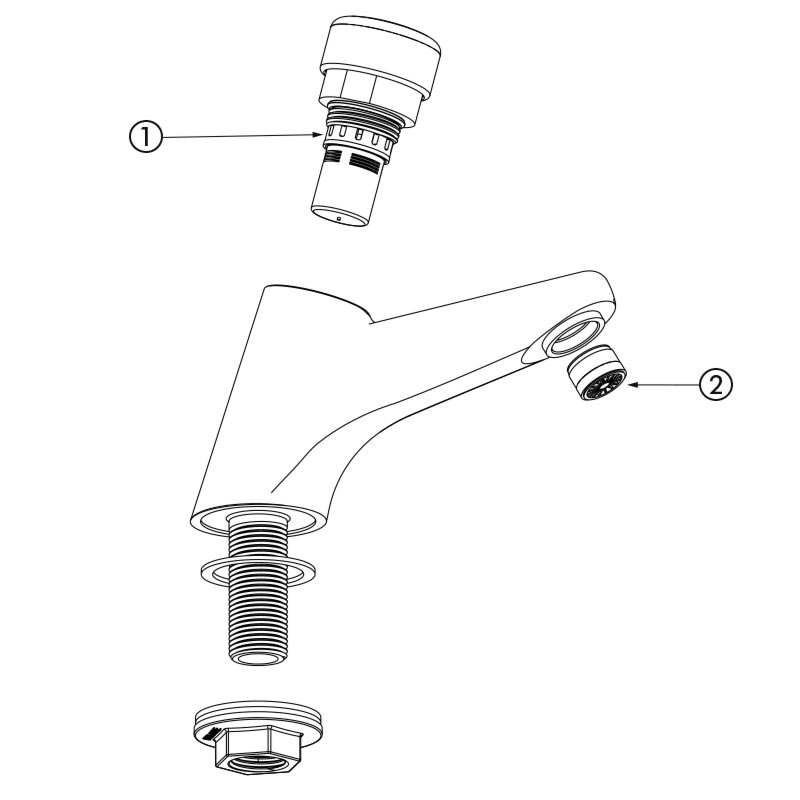 Réf. 702000Robinet poussoir de lavabo sur vasque :