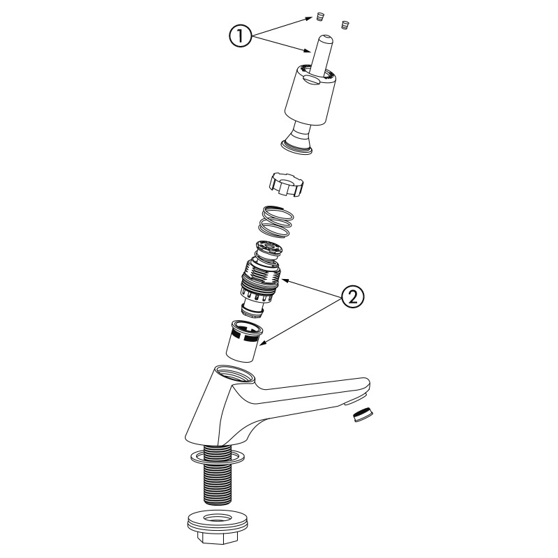 Réf. 745440Robinet poussoir de lavabo sur vasque à levier :