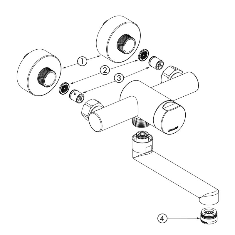 Raccords excentrés M1/2" pour entraxe de 130 à 170mm.