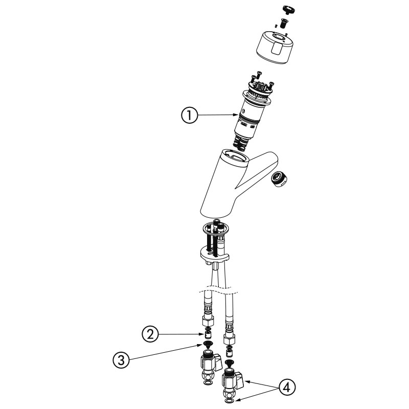 Réf. 795000Mitigeur de lavabo temporisé monocommande sur vasque :