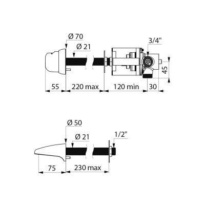 Réf. 795209Mitigeur de lavabo temporisé monocommande en traversée de cloison :