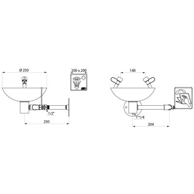 Réf. 9102Lave-yeux de sécurité mural à commande manuelle équipé de :