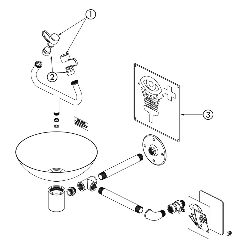 Plaque signalétique normalisée « lave-yeux de 1ᵉ secours » fournie.