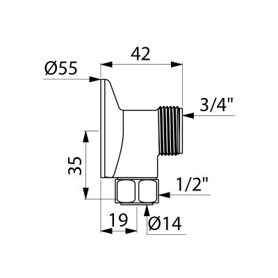 Réf. 841027.2PRaccord applique en laiton chromé.