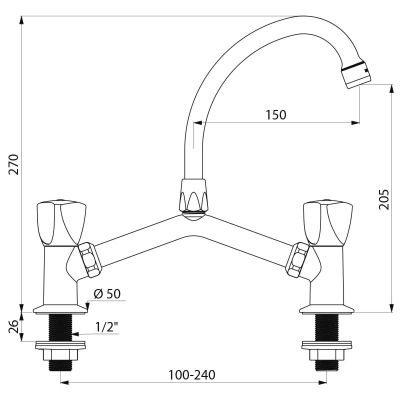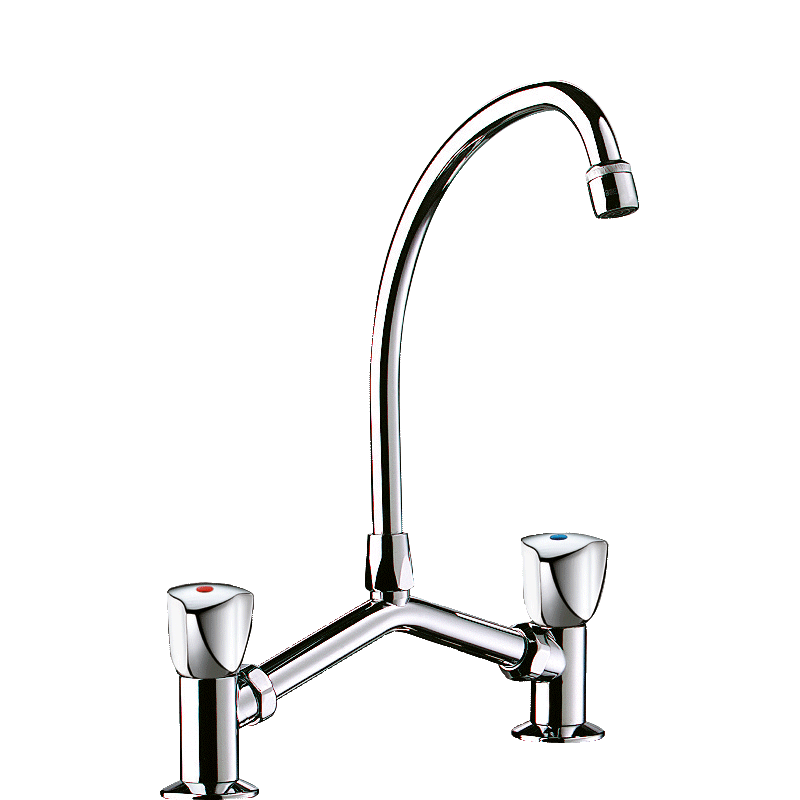 Réf. D2558Mélangeur de lavabo 2 trous avec têtes à clapet Long-Life.