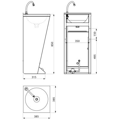 Réf. 180300Lave-mains sur pied avec commande au pied.