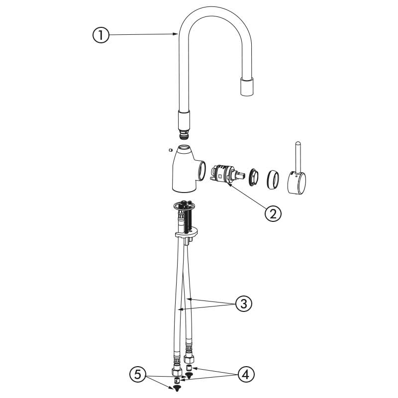 Réf. 2526T2Mitigeur monotrou sur gorge avec flexible autoportant H.535 mm maximum.