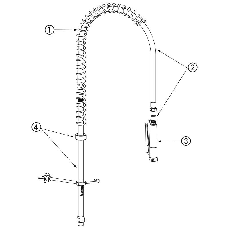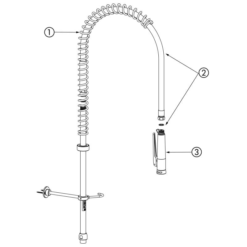 Ce modèle de combiné, sans robinetterie, est composé de pièces détachées pour la rénovation des dispositifs de prélavage.