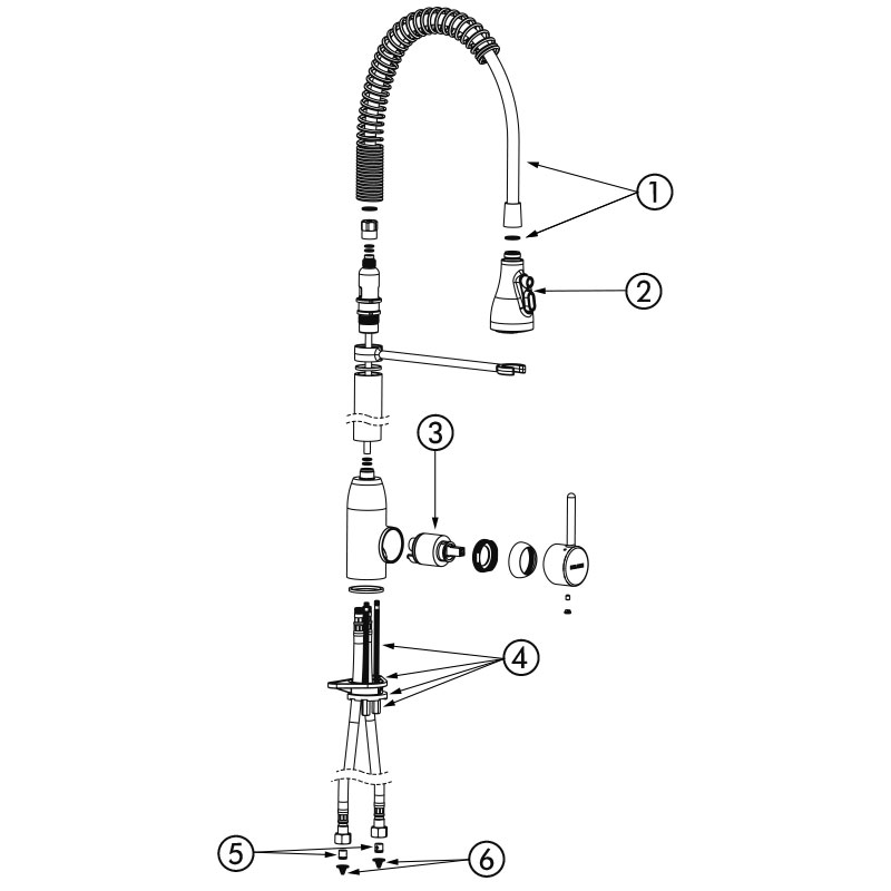 Réf. 5526Combiné de prélavage complet avec colonne et crochet orientable.