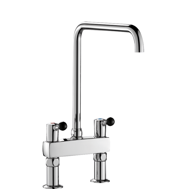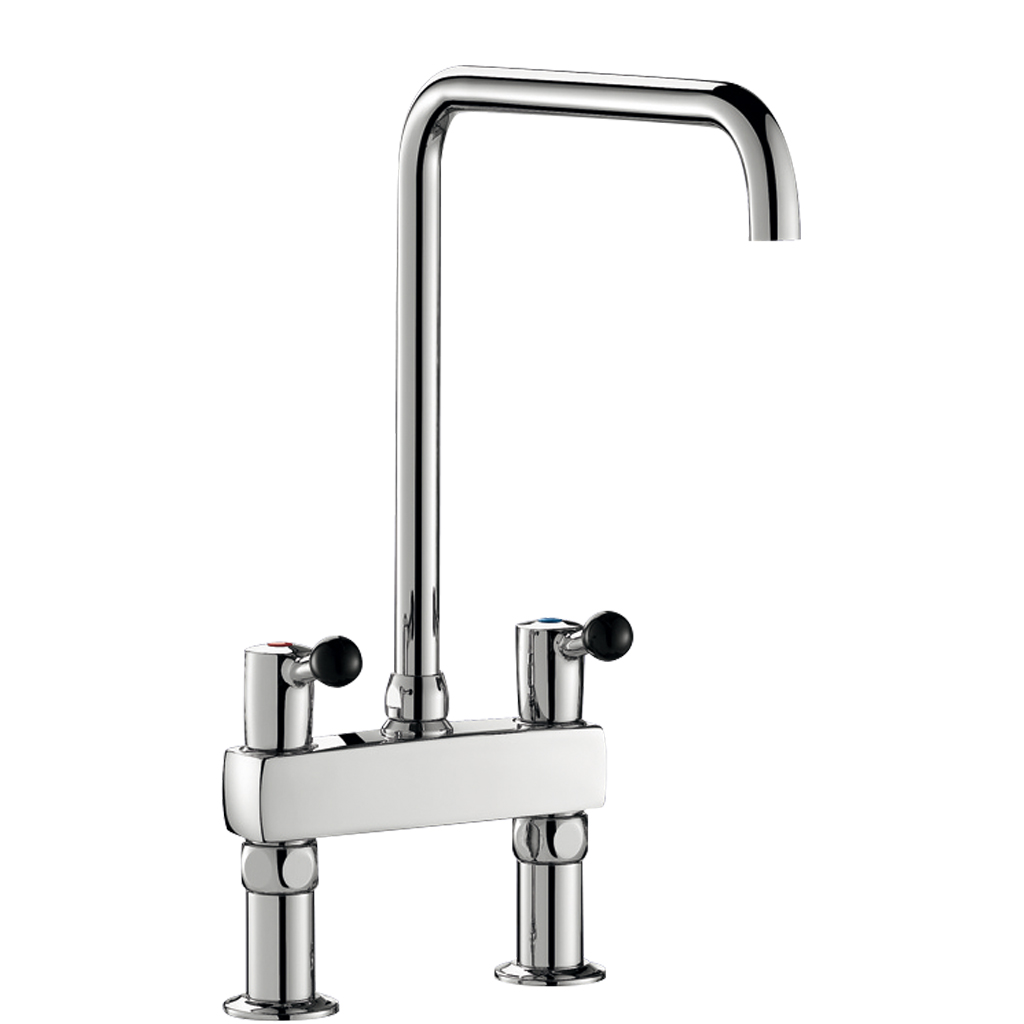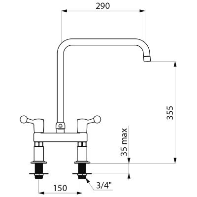 Réf. 5603Mélangeur 2 trous sur plage M3/4" à entraxe 150 mm sur colonnettes droites pour grandes plonges.