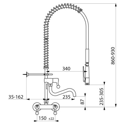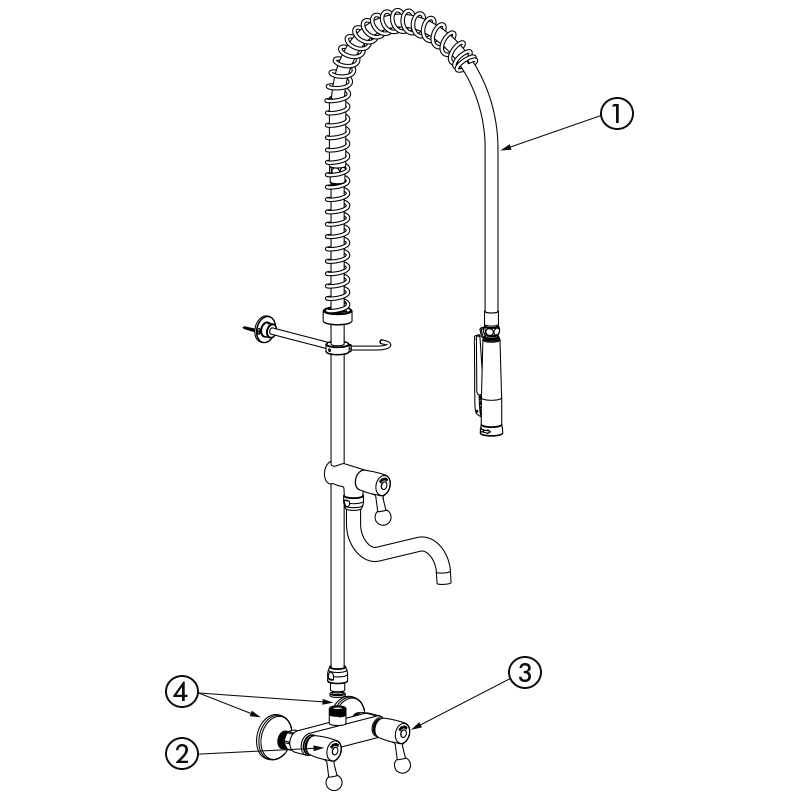 Réf. 5634Combiné de prélavage complet avec robinet de puisage adapté à un usage intensif en cuisines professionnelles.
