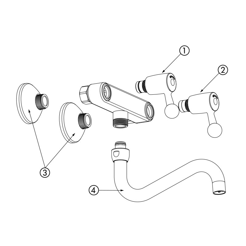 Réf. 5645T2Mélangeur 2 trous mural avec bec tube orientable par-dessous Ø 22 L.200 avec brise-jet étoile laiton.
