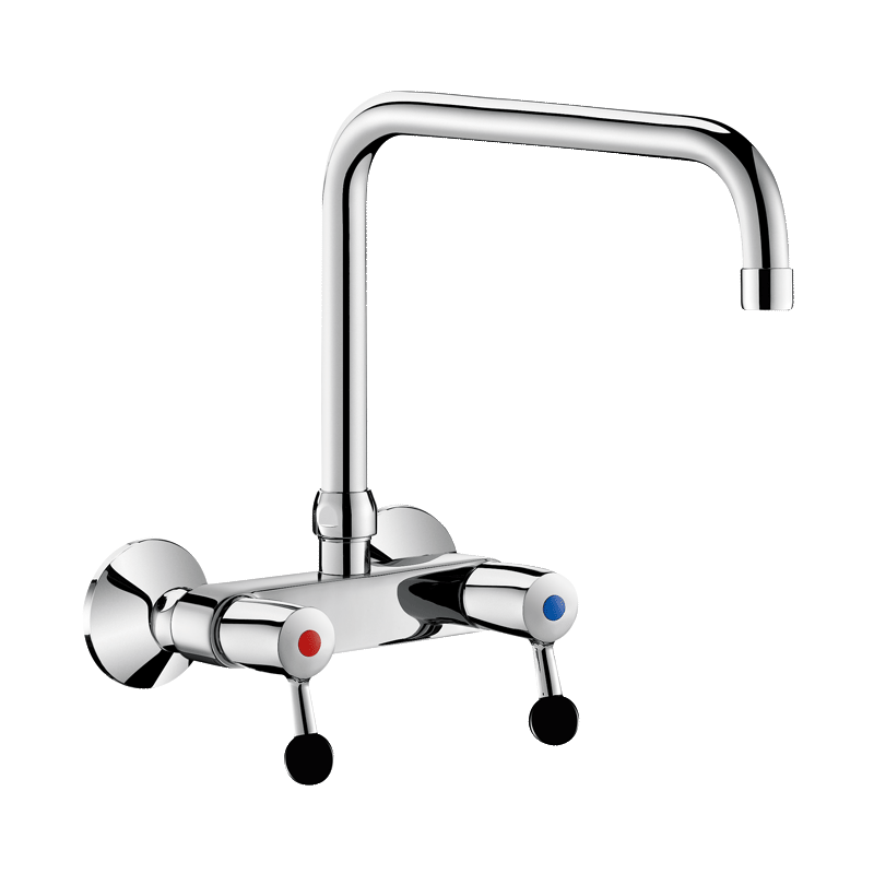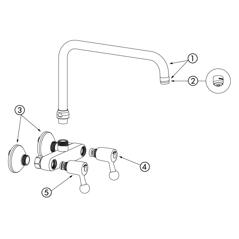 Réf. 5647T3Mélangeur 2 trous mural avec bec tube orientable par-dessus Ø 22 L.300 avec brise-jet étoile.