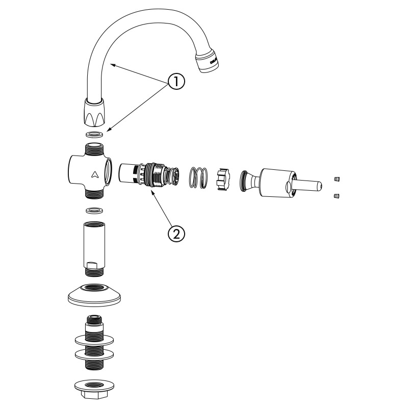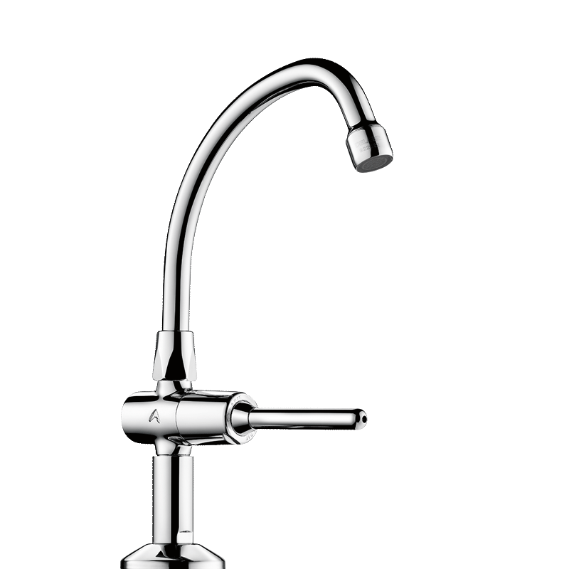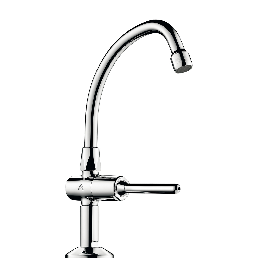 Robinet temporisé TEMPOSTOP pilier à bec col de cygne à levier L.150