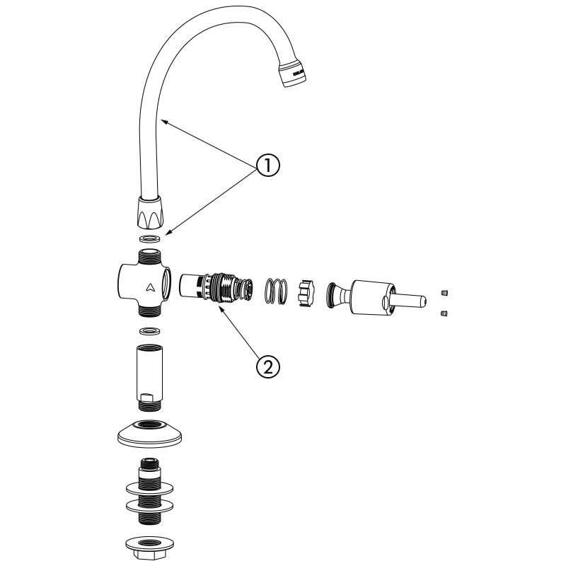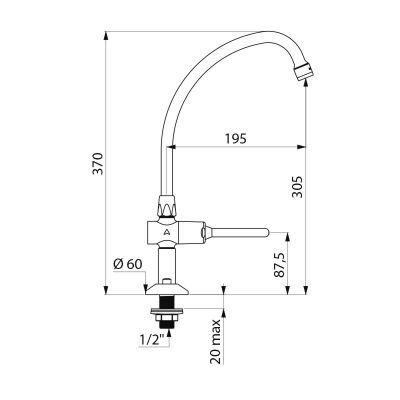 Robinet temporisé TEMPOSTOP pilier à bec col de cygne à levier L.200